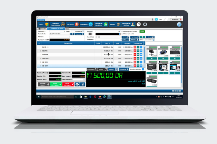 Easy Management est un logiciel conçu pour les commerçants et petites entreprises. Simple, moderne et efficace, il facilite la gestion des ventes, du stock, des factures et des clients au quotidien.